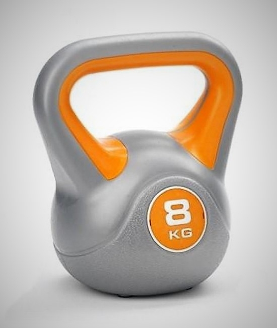 Činka Kettlebell plast 8 kg: Kettlebell je litinová činka ve tvaru dělové koule se zaobleným madlem s dlouholetou tradicí, jež sahá až do carského Ruska v 18. století. Kettlebell má z fyzikálního hlediska posunuté těžiště dále od místa úchopu, čímž mění veškeré pákové poměry při pohybu ve srovnání s činkami. Těžko se zážitky s cvičením popisují, ale jde opravdu o zvláštní pocit. Při cvičení je nutno používat ve velké míře i stabilizační svaly a dochází také k vítanému vylepšení pohybové koordinace. Materiál: Plast s cementovou náplní. Hmotnost činky je 8 kg. Ilustrační foto, možná jiná barevná kombinace dle skladových zásob.