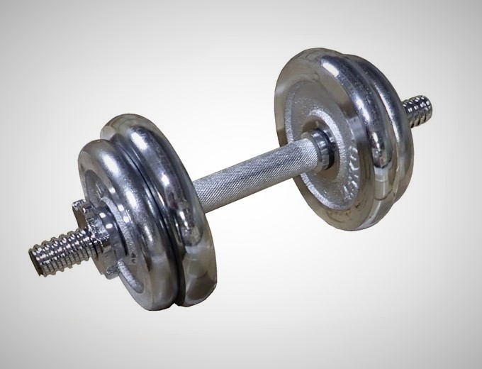Nakládací činka jednoruční - 10 kg, CHROMOVANÉ KOTOUČE, průměr chromované hřídele 25 mm. Hřídel 2 kg - 35 cm + momentálně kotouč 2 x 2,5 kg, 2 x 1,5 kg.