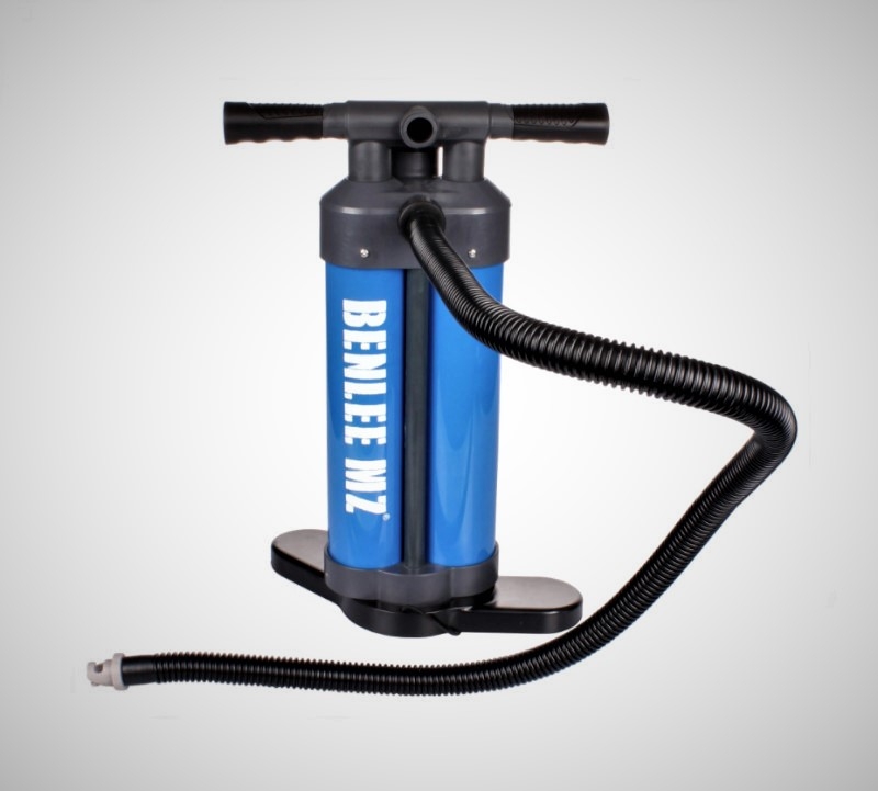 Vysokotlaká ruční pumpa k nafouknutí paddleboardu nebo Air Tracku. Ruční pumpa Air 180 je ideální volbou pro nafouknutí Air Tracku nebo paddleboardu, pokud zrovna nejste poblíž elektrické zásuvky. Obrovskou výhodou je její praktičnost, kdy se díky odnímatelným rukojetím (ergonocmicky tvarované) a nášlapkám lépe vejde do kufru nebo větší tašky či batohu. Součástí balení je 130 cm dlouhá hadice s klasickým bajonetem. Pumpa má dva vzduchové válce a můžete ji přepínat mezi 3 funkcemi – I. velký objem, II. střední tlak na větší nahustění nebo III. vysoké natlakování konečné dofouknutí. Součástí horní části je budík ukazující tlak (stupnice od 0 do 2 baru a od 0 do 28 PSI), se kterým budete moci AirTrack nebo paddleboard nahustit na přesně určený tlak. Pumpa má i funkci vyfukování, stačí jen hadici zapojit do druhého otvoru.
