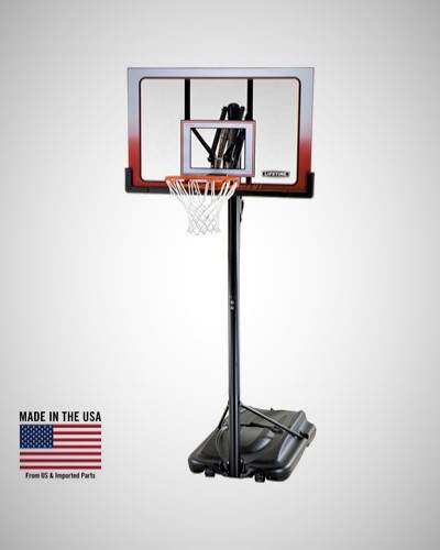 Streetballová, basketbalová souprava. 130 x 83 cm polykarbonátová deska SHATTER Proof (proti roztříštění) polykarbonát MAKROLON® s moderním designem grafická úprava odolná proti vyblednutí snadno ovladatelný zvedací mechanismus - Action Grip® nastavitelná výška koše 228 - 305 cm po 15 cm stupních, tyč ze 3 částí maximální vysazení desky od tyče 55,8 cm odpružená oranžová obroučka 45 cm (2 pružiny) - Slam-It® obsah podstavce - základny 133 l - rozměry 120 x 82 x 22 cm podstavec (HDPE) plnitelný pískem nebo vodou síťka 70 gramů - do každého počasí Hmotnost výrobku 47 kg.