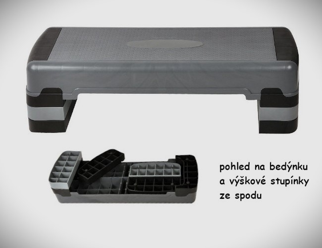 Bedýnka step aerobic 3 stupně 80 x 31 x 15/20/25 cm, umělohmotná se používá ke cvičení speciální formy aerobicu - step aerobicu. Jedná se populární a účinné cvičení, které vychází z klasického aerobiku. Step aerobic zaručuje intenzivní trénink redukující tuky, zatížení svalů dolních končetin, ale zároveň jde o cvičení šetrné k našemu kloubnímu a vazivovému aparátu. Při cvičení step aerobicu cvičenci překonávají vystupováním na bedýnku a sestupováním zpět na podložku výškový rozdíl. Tím dochází k podstatně jinému zatěžování svalstva dolní poloviny těla než u běžného aerobiku. Step aerobic je výborný na redukci váhy, zvyšuje celkovou fyzickou kondici a pomáhá tvarovat celé tělo (zejména nohy a hýždě). Jedná se o velmi efektivní aerobní aktivitu, při níž můžete velmi rychle zhubnout. Navíc vám cvičení vyplaví velké množství endorfinů, které vám zajistí psychickou pohodu a zbaví vás stresu. Námi nabízená aerobic step bedýnka má 3 nastavitelné výšky - 15, 20 a 25 cm. Nosnost 120 kg. Protiskluzový ergonomický povrch.