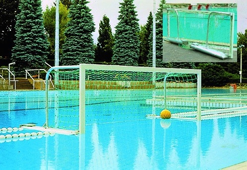 Branka na vodní pólo volně plovoucí 3 x 0,90 m, sklopná, konstrukce břevno - tyčka barva bílá, ALU, se sítí 4 mm. Sklopná stabilní konstrukce, nepotopitelná díky vypěněným plovákům. Konstrukce břevno/tyče - bílý vypalovací lak, síťové oblouky, vyvažovací závaží, bezpečnostní systém uchycení sítě. Barva sítě zelená. Snadná montáž a demontáž. Vyrobeno v Německu.