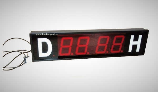 Velikost 50x15 cm, výška číslic 12 cm, zobrazuje body a denní čas. Napájení do zásuvky 220 V. Dálkové ovládání. Upevnění na stěnu je přes konzoli, kterou můžeme dodat v ceně. Co se týče ochrany proti míčům , tak při vhodném umístění v hale není potřeba dodatečné krytí. Vhodným umístěním se rozumí místo, kde ukazatel mohou zasáhnout pouze odražené míče. Pokud by byl umístěn ukazatel někde v prostotu fotbalové branky je potřeba dodat ocelovou mříž, cenu Vám rádi zašleme na vyžádaní. VYROBENO V ČESKÉ REPUBLICE.