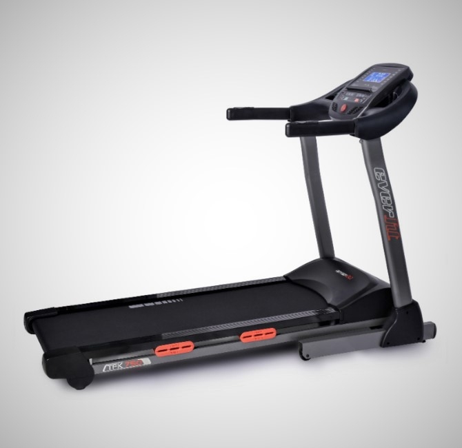Běžecký pás EVERFIT TFK 750 ocení uživatelé, kteří preferují plnohodnotný běžecký trénink v pohodlí domova. Trenažér je vybaven komfortní běžeckou plochou o rozměrech 141 x 50 cm s kvalitním odpružením, elektronickou regulací stoupání v rozmezí 0-15% a elektromotorem s trvalým výkonem 3 PS. Přehledný LCD displej s modrým podsvícením poskytuje dokonalý přehled o všech měřených hodnotách a nabízí 21 tréninkových programů, včetně HRC módu. K dispozici jsou také funkční tlačítka pro rychlou volbu rychlosti a sklonu pásu. Díky vestavěným reproduktorům a audio vstupu pro MP3 si můžete trénink zpestřit poslechem oblíbené hudby. Další výhodou pásu je možnost sklopení pro úsporu místa a rychlá a jednoduchá montáž. Technické parametry a vybavení Výkonný motor s tichým chodem. Elektromotor o maximálním trvalém výkonu 3 PS a maximálním záběrovém výkonu 4 PS. Elektronické nastavení rychlosti běhu v rozmezí 1,0-20 km/h (po 0,1 km/h krocích). Běžecká plocha. Běžecká dráha o rozměrech 141 x 50 cm je vhodná k chůzi i pro pravidelný domácí běžecký trénink, elektronická regulací stoupání v rozmezí 0-15%. Tloušťka běžecký desky je 1,6 mm. Speciální odpružení desky pomocí systému Soft Tech Cushions a 4 elastomerů šetří klouby a tlumí nárazy i při intenzívnějším tréninku. Bezpečnost. Pro případ rychlého zastavení pásu slouží bezpečnostní STOP-pojistka ve formě magnetického klíče. Měření pulsu. Prostřednictvím dlaňových senzorů (integrovány v madlech) nebo hrudním pásem, který měří s přesností EKG (vol. příslušenství). Integrovaný přijímač signálu Cardio Puls Setu. Vybavení. 2 vestavěné reproduktory, USB port pro doplňující software TRX App Gate, audio vstup pro připojení MP3, stojánek na tablet nebo smartphone. Jednoduchá manipulace. Pomocí hydraulického tlumiče lze běžeckou plochu snadno sklopit. Následnou manipulaci s trenažérem usnadní 4 transportní kolečka. Napájení. Síťová přípojka: 230 V / 50 Hz. Snadná montáž. Běžecký pás je z 80% předmontovaný, samotná montáž je tak jednoduchá a časově nenáročná. Rozměry. Po sestavení (d x š x v): 196 x 83 x 136 cm. Po sklopení (d x š x v): 107 x 83 x 166,5 cm. Hmotnost: 74 kg. Nosnost 120 kg.