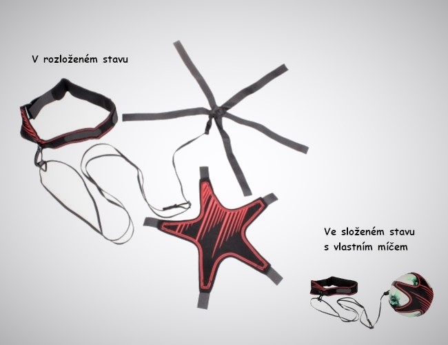 Fotbalový trenažér je výborný pomocník k vypilování techniky nohou a práce s míčem. Trenažér se skládá z bederního pásu a pásků na míč, obě části jsou spojené gumou s nastavitelnou délkou. Míč není součástí, což je nepochybně výhodou, protože můžete trénovat s míčem na který jste zvyklí. Zkoušejte přihrávky, zlepšujte rychlost reakce a míč se vám pokaždé vrátí zpět k noze. Celý trenažér je vyrobený z elastického materiálu (70 % SBR + 20% polyuretan). Nastavitelný bederní pás i obal na míč se upíná pomocí suchého zipu. Obal na míč má nastavitelné zipy, takže skvěle padne na míče s velikostí č. 3, 4 a 5. Malé rozměry trenažéru umožňují jednoduchou manipulaci, trénink tak můžete uskutečnit prakticky kdekoliv, kde bude dostatek místa. Vhodné pro děti i dospělé, kteří chtějí posouvat své fotbalové hranice. Technické parametry: Bederní pás pro obvod pasu 65 - 90 cm, guma s rozpětím 107 - 215 cm a obal míče vhodné pro míče - č. 3, 4, 5.