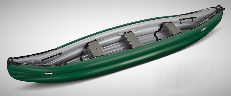 SCOUT je nafukovací kánoe s novodobou konstrukcí. Hlavními přednostmi jsou komfortní výbava, obrovský vnitřní prostor, vysoká nosnost, vyvážené jízdní vlastnosti. To vše ocení dobrodruzi s bagáží, lovci adrenalinu v peřejích i rodiny s dětmi. Kánoe Scout přináší inovativní systém výztuh T-BONES (verze standard), zajišťující vynikající prostorovou pevnost lodi jízdní vlastnosti srovnatelné s lodí pevnou. U tohoto typu lodi rozlišujeme verzi Standard a Ekonomy. Délka lodě je 445 cm, šířka 95 cm, hmotnost 25 kg, max. nosnost 450 kg, materiál Nitrilon®, počet osob 3, rozměry kartonu 71x47x33 cm. K výbavě lodi patří: samo vylévací dno s rolovacím uzávěrem, sedačky s pěnou „comfort pad”, systém výztuh t – bones, stehenní popruhy s bezpečnostní sponou, vázací lano na přídi a zádi, bezpečnostní lano na přídi a zádi, 2 páry úchytů na bagáž, trubková madla na přídi a zádi, pružné smyčky s kuličkou na uchycení pumpy, přetlakový ventil ve dně lodi, push-push ventily, transportní vak. VYROBENO V ČESKÉ REPUBLICE.