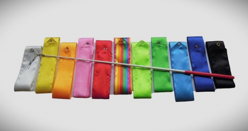 Gymnastická stuha + kovová tyčka s karabinkou pro moderní gymnastiku. Dodáváme v jednobarevném provedení: bílá, žlutá, oranžová, růžová, zelená, modrá, černá, červená, tm. modrá, tm. zelená a více barevné provedení: duhová.