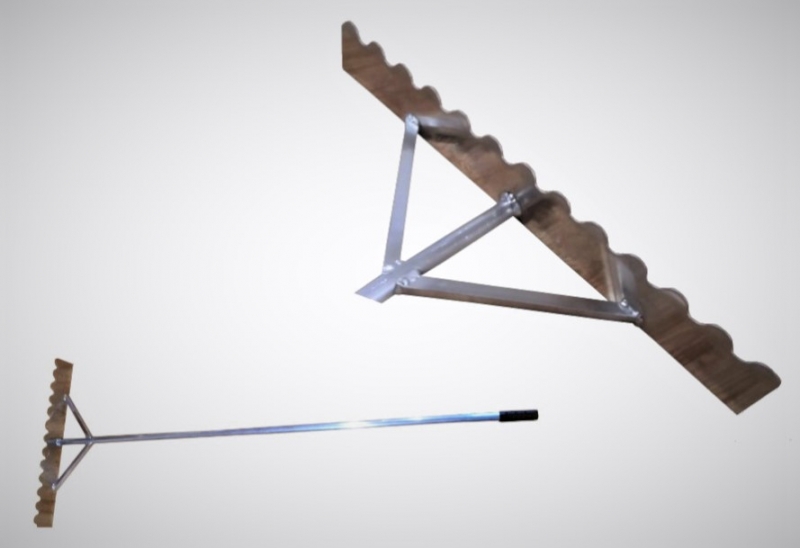 Hrablo na písek celohliníkové. Šíře 80 cm, je z pevné hliníkové desky - hloubka 10 cm, robustní hliníková násada o délce 225 cm. Celková hmotnost 2 kg. VYROBENO V ČESKÉ REPUBLICE.