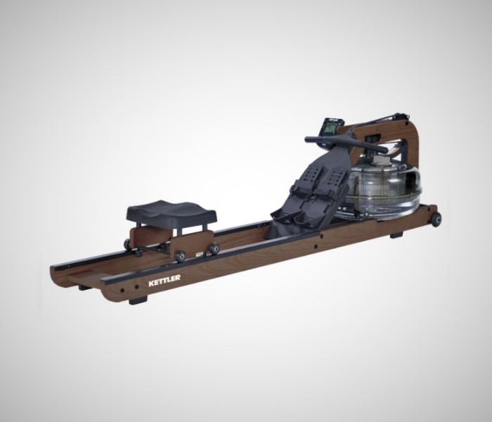 Veslovací trenažér KETTLER AQUAROWER 700 se stane vynikajícím pomocníkem, ať se rozhodnete posílit svaly, zlepšit krevní oběh nebo celkově zapracovat na fyzické kondici. Díky robustní rámové konstrukci, která je kombinací masivního dřeva z amerického jasanu a kvalitní oceli, je trenažér ideální pro ambiciózní trénink v prostředí domácí posilovny. Vodní brzda s manuální regulací zátěže v 5 stupních a dvojité kolejnice zajišťují naprosto tichý, klidný a plynulý provoz. Velký a přehledný LCD displej informuje o důležitých výkonnostních hodnotách, všechny relevantní údaje tak máte neustále pod kontrolou. Bluetooth rozhraní umožňuje propojit trenažér s tabletem nebo smartphonem a využít tak programové nabídky tréninkové aplikace KETTMaps nebo dalších sportovních aplikací. Trenažér navíc zaujme i pohodlím - je vybaven anatomicky tvarovaným sedlem s protiskluzovou úpravou, ergonomickým madlem a opěrkami nohou nastavitelnými dle velikosti chodidla. Technické parametry trenažéru: Vodní brzdný systém s tichým a plynulým chodem. Tréninkový odpor je regulován manuálně, pomocí otočného regulátoru v 5 stupních. Komfortní pojezd. Paralelní kolejnice pojezdu pro vyšší stabilitu trenažéru a pohodlný posed při veslování. Robustní konstrukce snese zatížení až 150 kg. Tréninkový počítač. Velký a přehledný LCD displej s 8 permanentně zobrazenými funkcemi a pohodlným ovládáním měří: čas, tréninkovou vzdálenost, počet záběrů za minutu, výkon ve wattech, čas na 500m, puls a počet spálených kalorií za hodinu. Displej také zobrazuje údaj o aktuální zátěži. Mechanismus překlopení trenažéru. Překlopení trenažéru do vertikální polohy je velmi praktickým řešením zejména při nedostatku úložných prostor, umožňuje bezproblémové skladování veslovacího trenažéru i v menších místnostech. Manipulaci s trenažérem usnadní transportní kolečka (umístěná vpředu). Vybavení trenažéru. Anatomicky tvarované sedlo s protiskluzovou úpravou, opěrky nohou nastavitelné dle velikosti chodidla a ergonomicky tvarované madlo pro jistý úchop. Elektronické měření pulsu. Prostřednictvím hrudního pásu, který měří s přesností EKG (vol. příslušenství). Napájení trenažéru. Tužkové baterie (2 × AA - 1,5 V). Minimální nároky na prostor. Rozměry po sestavení (d × š × v): 213 × 52 × 56 cm. Hmotnost: 33 kg.