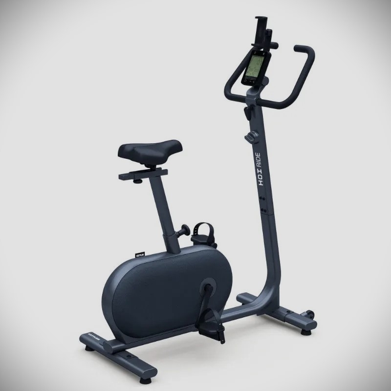Rotoped KETTLER HOI RIDE Stone magnetický rotoped s hlubokým nástupem, manuální nastavení zátěže, zátěž 1-10 stupňů, přehledný LCD displej, Bluetooth rozhraní, polohovatelné sedlo i řídítka, držák na láhev, 6 kg setrvačník, hmotnost 35,5 kg, nosnost 110 kg. Technické parametry rotopedu: Magnetický brzdný systém s tichým chodem. Plynulá regulace brzdného odporu v závislosti na otáčkách. Rozsah zátěže v rozmezí 1-10 stupňů si lze manuálně nastavit pomocí otočného regulátoru. Tichý převodový systém. Šlapací střed je osazen průmyslovými ložisky, energie vynaložená na šlapání se převádí do setrvačníku pomocí plochého průmyslového řemene s podélným drážkováním. Setrvačník o hmotnosti 6 kg je kalibrován proti kmitu. Stabilní konstrukce. Robustní rám s vyváženou geometrií, ideální pro osoby s tělesnou výškou v rozmezí 1,5 – 2 metry. Mechanismus vyrovnávající nerovnosti podlahy zajistí maximální bezpečnost a stabilitu během tréninku. Rám s hlubokým nástupem. Hluboký nástup umožňuje pohodlné a bezpečné nasedání na rotoped i při pohybové indispozici. Konstrukce rámu je navržená pro maximální zatížení 110 kg. Individuální nastavení dle potřeb trénujícího. Komfortní sedlo s možností rychlého výškového nastavení i horizontálního posuvu, ergonomická řídítka s možností úpravy sklonu, nastavitelné řemínkové pedály pro správné upevnění nohou. Vybavení trenažéru. Držák na smartphone nebo tablet, držák na láhev s variabilním upevněním, transportní kolečka pro snadnou manipulaci (umístěná vpředu). Měření pulsu. Bluetooth rozraní a ANT+ pro propojení s hrudním pásem (volitelné příslušenství), HOI RIDE je vybaven integrovaným přijímačem signálu z hrudního pásu. Napájení trenažéru. Tužkové baterie (2 × AA - 1,5 V). Kompaktní rozměry. Po sestavení (d × š × v): 110 × 51 × 155 cm. Hmotnost: 35,5 kg.