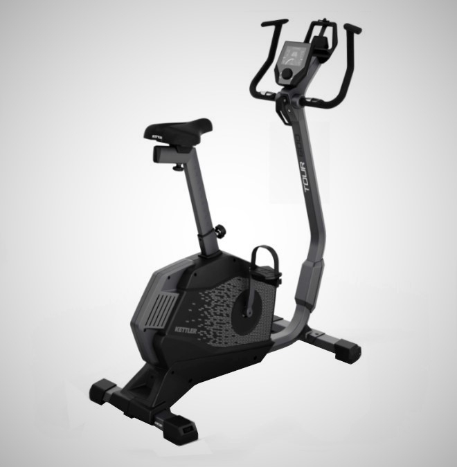 Plně vybavený ergometr KETTLER TOUR 600 je určen pro všechny ambiciózní hobby sportovce. Vyznačuje se zesílenou konstrukcí s hlubokým nástupem speciálně navrženou tak, aby byla snadno přizpůsobitelná osobám s různou tělesnou výškou a zároveň umožnila nadstandardní zatížení do 150 kg. Prostřednictvím tréninkového počítače s přehledným displejem si lze jednoduše nastavit cílové hodnoty, případně vybírat z 10 integrovaných tréninkových programů, včetně pulsem řízeného módu. V paměti počítače mohou být trvale uložena osobní data pro 4 osoby současně. Velkou předností je také možnost propojení trenažéru se smartphonem nebo tabletem a využití tréninkové aplikace KETTMaps. Technické parametry ergometru: Tichý převodový systém. Šlapací střed je osazen průmyslovými ložisky, energie vynaložená na šlapání se převádí do setrvačníku za pomoci plochého průmyslového řemenu s podélným drážkováním. Setrvačník o hmotnosti 8 kg je kalibrován proti kmitu, poměr otáček střed/setrvačník je 1:10. Vybavení trenažéru. Komfortní fitness sedlo s možností výškového a horizontálního posuvu a s úpravou sklonu posedu, ergonomická řídítka s variabilním úchopem a výškovou nastavitelností, zesílená konstrukce s hlubokým nástupem pro maximální zatížení až 150 kg, samonastavovací řeménkové pedály, stojánek na smartphone nebo tablet, kolečka pro manipulaci (umístěná vpředu) a mechanismus vyrovnávání nerovností podlahy (vzadu). Zesílený rám ze značkové oceli s nízkým nástupem. Nízký nástup umožňuje velmi pohodlné nasedání na ergometr, a to i při pohybové indispozici. Robustní konstrukce rámu je navržena pro vyšší postavu a pro nadstandardní zatížení 150 kg. Elektronické měření pulsu. Dlaňovými senzory (jsou součástí) nebo prostřednictvím hrudního pásu, který měří s přesností EKG (volitelné příslušenství). Napájení trenažéru. Síťová přípojka: 230 V / 50 Hz. Minimální nároky na prostor. Rozměry po sestavení (d × š × v): 119 × 55 × 137 cm. Hmotnost: 36 kg.