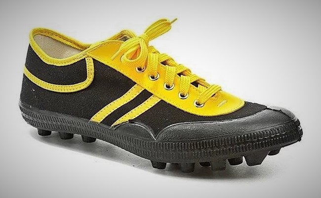 Fotbalové kopačky gumotextilní v černo - žluté barvě.