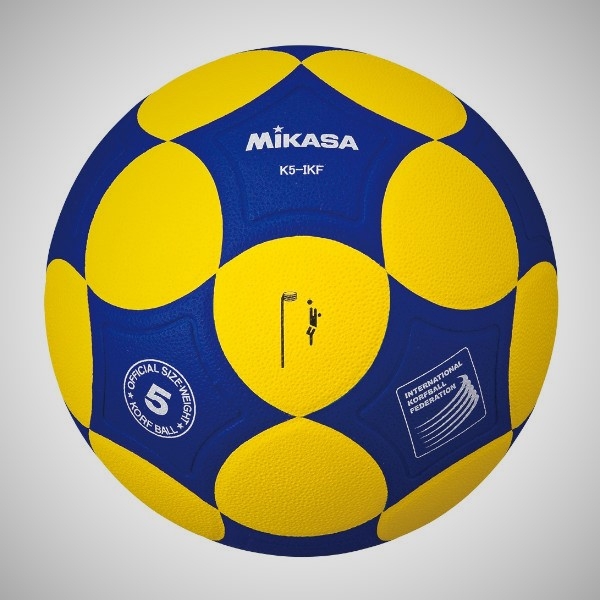 Oficiální hrací míč IKF (International Korfball federation) a Českého korfbalového svazu. Seniorská velikost. Velikost 5; hmotnost 445 - 475 g; obvod 68 - 70,5 cm. MIKASA korfball K5IKF je oficiální hrací míč Mezinárodního korfbalové federace (IKF) a je licencován pro všechny mezinárodní soutěže. Na povrchu je jemný syntetický materiál s malými prohlubněmi. Tato struktura dává míči lepší přilnavost a zajišťuje optimální hratelnost. Dvojvrstvá vzdušnice „no-leak“ a dokonalý těsnící ventilek dělají tento míč extrémně odolný. Modro-žlutá barevná kombinace jednotlivých panelů dává míči dokonalou viditelnost jak pro hráče, tak pro diváky.