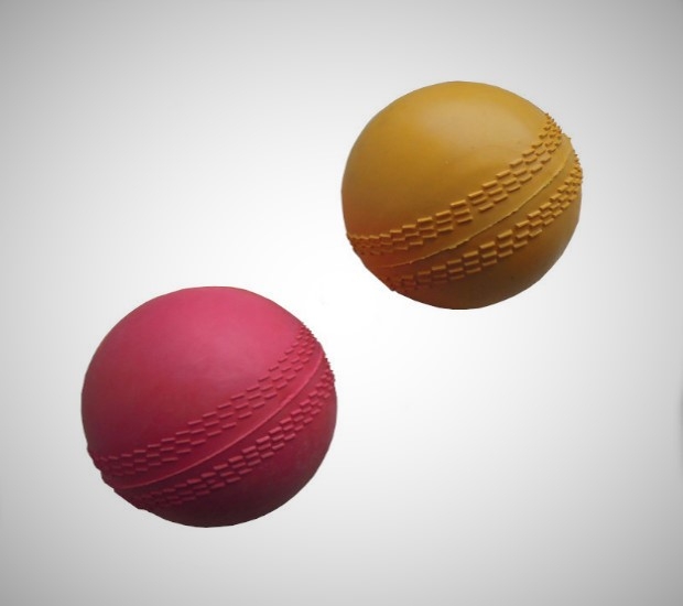 Kriketový míček 150 g s protiskluzovou perforací po obvodu. Průměr cca 7 cm, gumový. Barva červená nebo žlutá dle skladových možností.