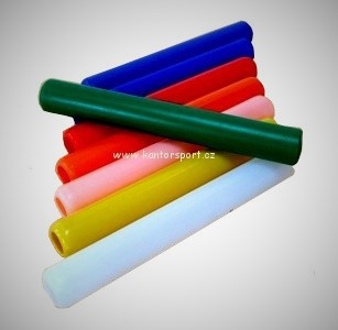 Štafetový kolík plast. Štafetový kolík musí být duté těleso kruhového průřezu, hladkého povrchu, zhotovené ze dřeva, kovu nebo jiného tuhého materiálu z jednoho kusu, jehož délka musí 280 být až 300 mm. Kolík musí mít vnější průměr 40 mm ± 2 mm a nesmí mít hmotnost menší než 50 gramů. Kolík může být barevný, aby byl jasně viditelný během závodu. Barvy na obrázku jsou ilustrační. Momentálně skladem barva sig. žlutá nebo tmavě žlutá, signální oranžová, růžová, lila a fialová, světle a tmavě zelená, modrá.
