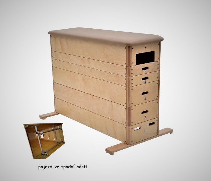 Bedna je vyrobena z 18 mm silné překližky, která je ukončena na rozích masivními bukovými rohy. Toto je záruka vysoké kvality, pevnosti a bezpečnosti bedny. Bedna je povrchově ošetřena bezbarvým lakem. Vrchní díl je polstrovaný pěnou a pokrytý umělou kůží. Spodní část (základna) je vybavena protiskluzovou, podlahu neznačkující podložkou. Rozměry bedny: délka 145 cm, šířka 45 cm, výška bedny 110 cm. Bedna je se speciálním transportním systémem, který umožňuje jednoduché přemísťování bedny z místa na místo. Systém je umístěn v bedně a je součástí spodního dílu bedny. Výrobek je v souladu s ČSN EN 913 a ČSN EN 916.