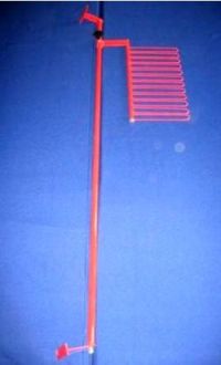 Měřič výskoku z ocelové konstrukce k přichycení na stěnu, výškový rozsah měření na stupnici 50 cm po 5 cm, komaxit. Rozm. 210 x 35 cm, váha 8 kg.