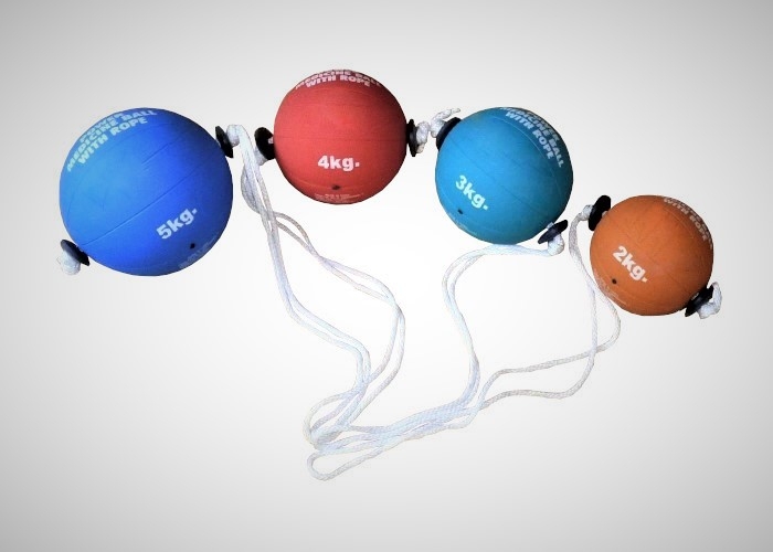 Medicinální míč s lanem - 2 kg gumový NA LANĚ