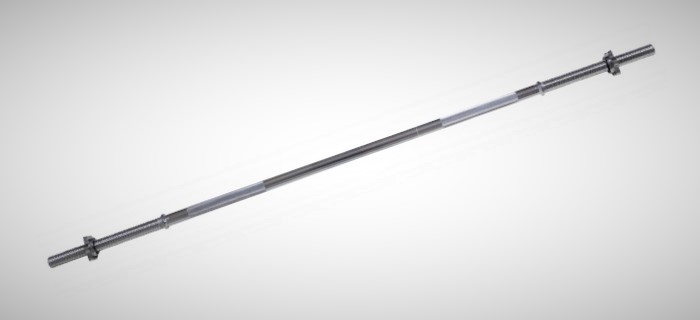 Vzpěračská tyč o průměru 30 mm, tedy na průměr otvoru kotoučů 30 mm, délky závitu 41cm a celkové délky 200cm. Závaží je zajišťováno maticí na závit. Součástí tyče jsou dvě matice. Osa má po celé své délce stejný průměr.