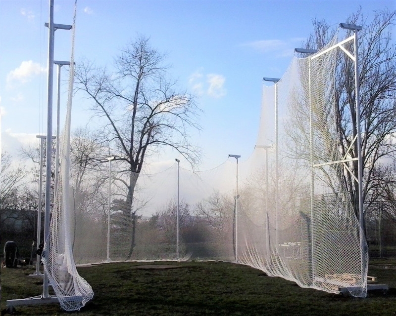 Patky ke kleci pro hod kladivem s certifikátem WA:E 21 1096. Ochranné klece se dodávají ocelové a hliníkové. Výhodou ocelových je jejich pevnost, hliníkové jsou vyhledávány především pro svoji odolnost vůči korozi a snazší manipulaci. Velkou pozornost je třeba věnovat umístění patek a dostatečně robustnímu zabetonování, aby nedošlo k poškození povrchu ani klece. Také je třeba pamatovat, že vrata kladivářské klece jsou posuvné a potřebují zpevněnou plochu, po které jezdí kolečka vrat. Upozornění pro projektanty V pravidlech WA je vyobrazeno rozvržení sítě, nikoli patek klece. Každý výrobce má jiné předsazení sloupu, na kterých sít visí, a proto je třeba projekt konzultovat s výrobcem. Dodáváme také jiné rozměry klecí, klece do stávajících (již zabetonovaných patek) a jiné provedení speciálně upravené podle potřeb stadionu. VYROBENO V ČESKÉ REPUBLICE. Ilustrační foto.