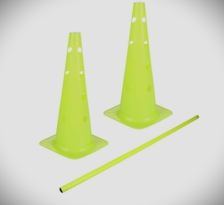 Překážková víceúčelová sada pro venkovní i vnitřní použití, 2 x kužel s výškou 47 cm, 1 x tyč délka 100 cm. Překážková Sada ve výrazné neonově žluté barvě je jednoduchá a praktická víceúčelová pomůcka pro vytvoření překážkové nebo slalomové dráhy na jakémkoli povrchu ve vnitřním nebo venkovním prostoru. Dva plastové kužely s otvory ve čtyřech různých výškách (12, 22, 30, 39 cm) můžete použít pro vyznačení tréninkové dráhy nebo je spojit plastovou tyčí o průměru 25 mm a délce 100 cm a vytvořit tak překážku v různých výškách. Při pořízení více kusů sad je můžete různě kombinovat a postavit tak velmi pestrou agility dráhu pro koordinační trénink. Obsah balení: - 2 x kužel s otvory (výška 47 cm, základna 22 x 22 cm, váha 1 kusu: 300 g); 1 x tyč (průměr 25 mm, délka 100 cm, váha 200 g). Materiál: plast PVC.
