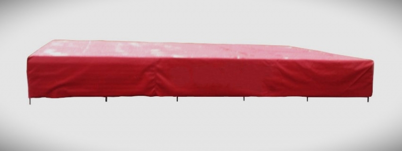Plachta proti dešti 6 x 4,3 x 0,75 m je nezbytnou součástí každého venkovního sektoru. Vyrábí se z plastelu, který je používán mimo jiné také na plachty u návěsu kamionu. Plachta je dostatečnou ochranou proti povětrnostním podmínkám. Je ovšem nezbytné pamatovat na průběžnou kontrolu, zda nedošlo k protržení plachty. Na plachtu se nesmí stoupat v tretrách a je třeba ji chránit před proříznutím. Plachtu je třeba zabezpečit před větrem přichycením k roštu doskočiště. Barva plachty viz. přiložený soubor barevnice níže. VYROBENO V ČESKÉ REPUBLICE.