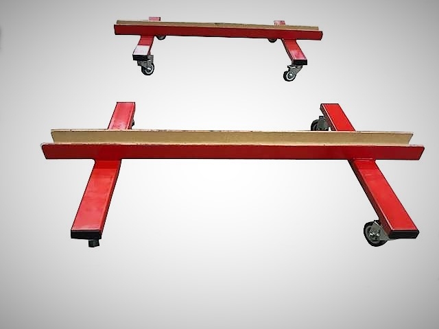 Pár pojezdů pro tělocvičné nářadí (koza, kůň, kladina) naše kódy 10011,10064,10065,10002,10004,10055,10043. Dvě ocelové konstrukce na otočných kolečkách. Povrchová úprava - prášková vypalovací barva (komaxit). VYROBENO V ČESKÉ REPUBLICE.