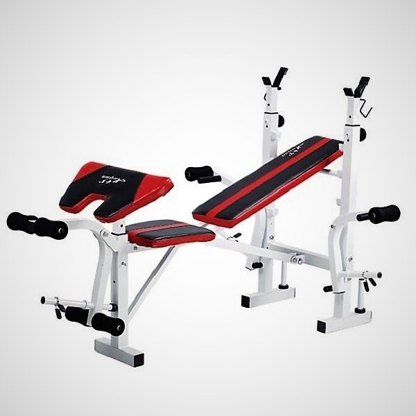 Posilovací lavice je ideální pro cvičení s činkou. Robustní rám a kvalitní polstrování zajišťuje dlouhou životnost. Ideální řešení pro domácí fitness. Technická data: Multifunkční posilovací lavice; možnost polohování sklonu; posilovač nohou; nastavitelná výška stojanu na činku; nastavitelné opěradlo do 4 stupňů; kvalitní polstrování; maximální hmotnost činky 100 kg; maximální zatížení předkopávání nebo zakopávání 50 kg; maximální zatížení butterfly 2 x 40 kg; celková nosnost lavičky (osoba+závaží): 150 kg. Rozměry po sestavení 180 x 130 x 131 cm. Opěrka 75 x 24 cm; sedačka 32 x 29 cm. Průměr hřídelí na závaží 25 mm; hmotnost 35 kg; nosnost 100 kg. Zajišťovací objímky na kotouče nejsou součástí balení. Rozměry balení (VxŠxH): 20 x 110 x 52 cm.