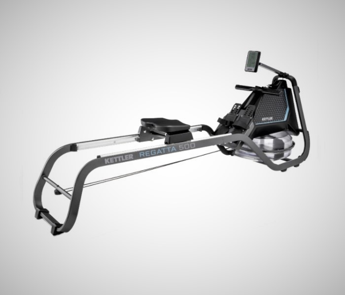 Veslovací trenažér KETTLER REGATTA 500 je ideální pro domácí kondiční trénink, díky dostatečně dlouhému pojezdu vyhovuje i sportovcům vyšší postavy. Trenažér je vybaven vodním brzdným systémem, odpor vytváří lopatka rotující v nádrži s vodou. Veslováním si odpor následně určujete sami – čím intenzivněji veslujete, tím vyšší je i odpor vody. O všech důležitých hodnotách informuje počítač s nastavitelným sklonem, trénink tak máte neustále pod kontrolou. Maximální komfort poskytne také pohodlné sedlo, opěrky nohou nastavitelné dle velikosti chodidla nebo Bluetooth rozhraní pro připojení aplikace KETTMaps. Díky praktickému mechanismu "překlopení" pro lepší uskladnění i v menších prostorech je veslovací trenažér REGATTA 500 skvělým nástrojem do domácí posilovny. Technické parametry trenažéru: Vodní brzdný systém. Tréninkový odpor je vytvářen lopatkou rotující ve vodní nádrži, která pojme maximálně 12 litrů vody. Odpor je závislí na intenzitě tahu – se zvyšující se intenzitou stoupá i odpor vody. Systém byl navržen tak, aby trenažér věrně simuloval ergonomii pohybu při klasickém veslování na vodě. Mechanismus překlopení trenažéru. Překlopení trenažéru do vertikální polohy je velmi praktickým řešením zejména při nedostatku úložných prostor, umožňuje bezproblémové skladování veslovacího trenažéru i v menších místnostech. Manipulaci s trenažérem usnadní transportní kolečka (umístěná vpředu). Vybavení trenažéru. Anatomicky tvarované pěnové sedlo s unikátním pojezdem, opěrky nohou nastavitelné dle velikosti chodidla a ergonomicky tvarované madlo pro jistý úchop. Elektronické měření pulsu. Prostřednictvím hrudního pásu Bluetooth, který měří s přesností EKG (vol. příslušenství). Napájení trenažéru. Tužkové baterie (2 × AA - 1,5 V). Minimální nároky na prostor. Rozměry po sestavení (d × š × v): 219 × 57 × 94 cm. Rozměry po sklopení (d × š × v): 94 × 57 × 219 cm. Hmotnost: 55 kg.