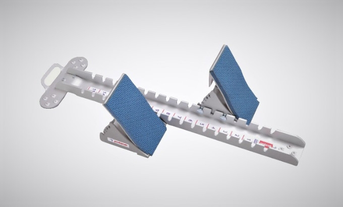 Starovní blok soutěžní hliníkový s vysokými opěrkami nohou - Lehký a moderní design, široký rozsah sklonu opěradla (5 pozic), pohodlná rukojeť umožňuje snadné přenášení bloku , určené pouze pro tartanový povrch. Hmotnost 5,6 kg. Certifikát WA.