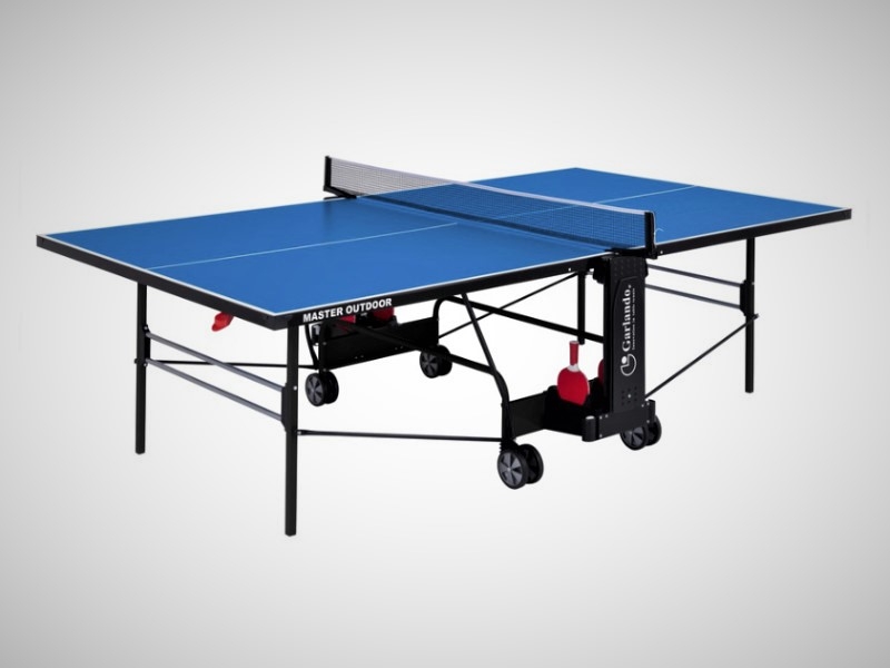 Venkovní stůl na stolní tenis GARLANDO Master Outdoor je ideální pro trénink rekreačních a hobby hráčů všech věkových kategorií. Hrací plocha je vyrobena z kvalitních laminátových desek o tloušťce 4 mm, které jsou odolné vůči nepříznivým vlivům počasí a umožňují dobrý odskok míčku a rychlou hru. Robustní konstrukce z čtvercových profilů 25 x 25 mm je vybavena čtyřmi transportními kolečky, z nichž 2 jsou otočná o 360°, což značně usnadňuje manipulaci se stolem po sklopení obou desek. Sklopení stolu je pomocí rukojeti umístěné pod hrací plochou snadné a naprosto bezpečné, bez problému ho zvládne i jedna osoba. Pro maximální stabilitu stolu je konstrukce vyztužena dvojitými vodorovnými spojovacími tyčemi. Součástí stolu je i pevně instalovaná síťka s napínákem a integrovaný držák na pálky a míčky. Technické parametry: Venkovní sklopitelný tenisový stůl, vhodný pro rekreační využití a trénink amatérských hráčů. Konstrukce stolu z čtvercových kovových profilů 25 x 25mm, povrchová úprava s práškovým lakováním odolným proti poškrábání. Robustní rám vyztužen dvojitými vodorovnými spojovacími tyčemi pro maximální stabilitu stolu. Hrací plocha z laminátových desek o tloušťce 4mm, povrchová úprava z vrstvené pryskyřice. Hrana s 36mm silným kovovým profilem. Antireflexní povrch desky neodráží světlo a hráče tak při hře neoslňuje. Pevně instalovaná síťka s napínáním je součástí, před sklopením stolu ji není nutné demontovat. Snadné a bezpečné sklopení desek stolu pomocí rukojeti umístění pod hrací deskou (SMS systém), nenáročné i pro jednu osobu. Čtyři dvojitá kolečka o průměru 125mm, 2 pevná a 2 otočná o 360° pro snadnou manipulaci se stolem v přepravní poloze. Integrovaný držák pálek a míčků je součástí stolu. Pingpongové pálky a míčky nejsou součástí balení. Standartní rozměry pingpongového stolu (d × š × v): 274 × 152,5 × 76 cm. Rozměry po sklopení (d × š × v): 152,5 (bez síťky) / 184 (se síťkou) × 66,5 × 187 cm. Hmotnost: 61 kg.