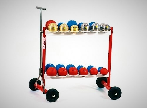 Stojan na koule - Když uvážíte váhu jakou koule mají a rovněž jak snadno se dají do pohybu, bude zřejmé, že jejich skladování na policích nebo na zemi je velmi nebezpečné. Proto v každém případě doporučujeme použití stojanů. Stojany jsou vyrobeny z ocelových trubek povrch je opatřen práškovou barvou. Stojany jsou dodávány v kartónech 95 x 45 x 9 cm nebo 110 x 55 x 13 cm. Hmotnost stojanů je od nejmenšího 8,9 kg po největší 21,5 kg. Montáž je velmi snadná, je potřeba jen spojit základnu a příčky s pomocí 6 šroubů.