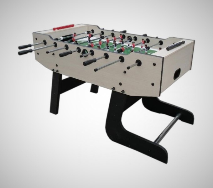 Stolní fotbal pro domácí i veřejné použití v provedení "stand and play" s kvalitními 16mm tyčemi! Díky svému vertikálnímu uložení je vhodný do míst, kde není na fotbálek pevné místo. Jednoduchá montáž a jednoduchá manipulace při sklápění, kdy po hře se jednoduše zvedne a přisune ke zdi, kde zabírá minimum místa. Po složení je fotbálek vysoký 165 cm. Kvalitní provedení korpusu, počítadlo gólů, neteleskopické tyče (průchozí) 16mm jsou samozřejmostí. Fotbálek je osazen teamem s malovanými hráči a kulatou kopačkou. Tento stolní fotbal vyniká dobrou skladovatelnosti a manipulativnosti. Je dodáván rozložený v krabici. Hmotnost 50 kg; rozměr 150 X 73 X 95 cm.