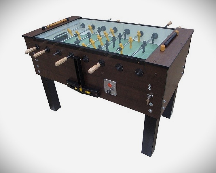 Fotbálek je konstruován z masivních laminovaných MDF desek, které přispívají robustnosti stolu. Podnoží je z ocelových jeklových profilů kvůli zvýšení tuhosti konstrukce. Tento stolní fotbal je konstruován pro hrubé zacházení v komerčních provozech. Podnoží je z ocelových jeklových profilů kvůli zvýšení tuhosti konstrukce. Tento stolní fotbal je konstruován pro hrubé zacházení v komerčních provozech. Hrací plocha je kryta bezpečnostním, nerozbitným sklem. Mincovník na 10 Kč nebo na 0,5 EUR. Krycí klec na míčky, chránící nedovolené manipulaci s míčky je součástí. Hrací plocha je ze zdrsněného skla pro maximální kontrolu hry, navíc s antireflexní úpravou. Hrací panáček tohoto fotbálku má kónickou kopačku uzpůsobenou přesné kontrole míče a trick shotům. Průchozí tyče o průměru 16mm z vysokopevnostní oceli. Antikorozní ochrana chromováním. Nové měkké gumové dorazy pro lepší tlumení nárazů. Profesionální, ergonomicky tvarované rukojeti z bukového dřeva. Součastí tohoto modelu je i integrováné, neoslňující osvětlení nad každou bránou pro maximální viditelnost během hry. Dodáváno v polorozloženém stavu s deseti bílími míčky 1x speciální mazací lubrikant. Hmotnost 100 kg. Rozměr 145 x 73 x 95 cm.