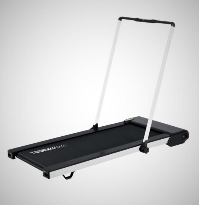 Běžecký pás TOORX CITY COMPACT zaujme na první pohled moderním designem, jednoduchým provedením a kompaktními rozměry. Pás se perfektně hodí do každého, i prostorově menšího, interiéru. Díky svým rozměrům nezabere moc místa a snadno se skladuje – pohodlně se vejde pod pohovku, pod postel nebo za skříň. Odpružená běžecká plocha o rozměrech 125 x 44,5 cm je vhodná zejména na chůzi nebo pro lehčí běh. Sklopitelné madlo má přímo před očima uživatele integrovaný LCD displej, který přehledně informuje o základních tréninkových hodnotách. Velkou výhodou pásu je také snadná a rychlá montáž, stačí pár minut a pás je připraven k použití. Technické parametry a vybavení: Výkon motoru. Elektromotor o maximálním trvalém výkonu 1,75 PS a maximálním záběrovém výkonu 2,75 PS. Elektronické nastavení rychlosti běhu v rozmezí 1-14 km/h (po 0,1 km/h krocích). Rychlost pásu lze pohodlně ovládat pomocí funkčních tlačítek na konzoli počítače. Běžecká plocha. Běžecká dráha o rozměrech 125 x 44,5 cm je vhodná k chůzi a pro lehčí běh. Tloušťka běžecký desky je 1,6 mm. Deska je odpružena pomocí šesti elastomerů, které dostatečně šetří klouby a tlumí nárazy i během každodenního pravidelného tréninku. Bezpečnost. Pro případ rychlého zastavení pásu slouží bezpečnostní STOP-pojistka ve formě magnetického klíče. Displej. Modře podsvícený LCD displej (8,8 x 1,9 cm) integrovaný ve sklopitelném madle přehledně zobrazuje základní tréninkové údaje: čas, rychlost, tréninkovou vzdálenost / počet kroků a počet spálených kalorií. Jednoduchá manipulace. Po skončení tréninku lze madlo snadno sklopit. Pro následnou manipulaci s trenažérem jsou k dispozici 4 transportní kolečka (umístěná vpředu). Minimální nároky na prostor. Kompaktní rozměry pásu po sklopení madla umožňují jeho pohodlné uložení pod sedačku, postel nebo za skříň. Pro ještě větší úsporu místa je pás možné také připevnit na zeď (háky na upevnění jsou součástí dodávky). Ve svislé poloze zabírá pás pouze 0,11 m2. Napájení pásu. Síťová přípojka: 230 V / 50 Hz. Snadná a rychlá montáž. Běžecký pás je v balení smontovaný. Stačí pouze zvednout a zajistit madlo, upevnit postranní rukojeti a pás je připraven k použití. Rozměry. Po sestavení včetně madel (d x š x v): 151,5 x 80 x 98 cm. Po sklopení (d x š x v): 162 x 80 x 13,8 cm. Hmotnost: 36 kg. Nosnost 100 kg.