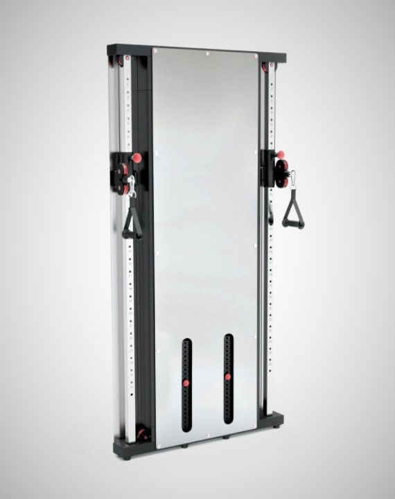 Protisměrná kladková konstrukce TOORX PRX 3500 prověří zejména svalové skupiny horní poloviny těla. Vyniká elegantním designem, vynikajícími technickými vlastnostmi a prvotřídním zpracováním. Stroj je modelem z edice trenažérů TOORX Chrono Line Pro, které jsou vhodné nejen na trénink v domácím prostředí, ale díky certifikaci ve třídě S, i pro lehce komerční provoz. Kladku je možno výškově nastavit tak, aby odpovídala individuálním požadavkům každého sportovce. Kryté závaží o hmotnosti 2 x 50 kg (20 x 2,5 kg) umožňuje řadu efektivních a komplexních cviků na posílení konkrétních svalových partií. Díky prostorově úspornému designu se zrcadlovým povrchem se trenažér stane i působivým doplňkem každého moderního interiéru. Technické parametry a vybavení: Výškově nastavitelný, protisměrný kladkový stroj pro cviky tahem, určený pro montáž na zeď. Prostorově úsporný, elegantní a „super štíhlý“ design. Dva oddělené sloupce se závažím z oceli, každý o hmotnosti 50 kg (20 x 2,5 kg), jednoduché nastavení zátěže pomocí kolíku. Integrovaný bezpečnostní kryt závaží se zrcadlovým povrchem. Otočné kladky s kvalitní povrchovou úpravou z eloxovaného hliníku, na kuličkových ložiskách. Kladková konstrukce s nastavitelnou výškou v rozmezí 25 – 190 cm pro širokou variabilitu cviků. Převodový systém z ocelových lan o pr. 4,8 mm. Polyuretanový potah lan pro tichý provoz a nízké opotřebení i při vysoké intenzitě cvičení. Dva jednoruční adaptéry s ergonomickým madlem pro jistý úchop. Snadná montáž, stroj je v balení již předmontovaný. Rozměry po sestavení (d x š x v): 97 x 16,5 x 198 cm. Hmotnost: 172 kg.