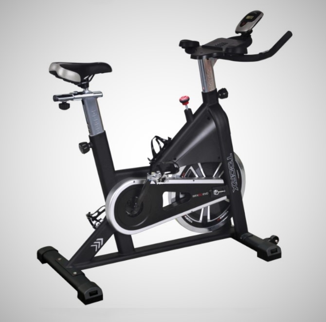 Indoor trenažér TOORX SRX 60 EVO je vhodný pro každodenní domácí kondiční trénink. Je vybaven čelisťovou brzdou a kalibrovaným setrvačníkem o hmotnosti 20 kg. Bezproblémový, plynulý a zcela tichý chod trenažéru i při vyšší zátěži zajistí řemenový převod a stabilní konstrukce s nosností 125 kg. Pro kontrolu tréninku je k dispozici přehledný LCD displej, který měří všechny důležité tréninkové hodnoty. Trenažér nabízí vysokou variabilitu nastavení, což umožní každému cyklistovi trénovat v optimální tréninkové pozici. Technické parametry: Konstrukce rámu. Stabilní ocelová konstrukce je vyrobena ze silnostěnných ocelových profilů s povrchovou úpravou odolnou proti poškrábání. Brzdný systém. Vyvážený setrvačník o hmotnosti 20 kg je brzděn čelisťovou brzdou s plstěnými destičkami. Převodový systém. Plynulá regulace brzdného odporu bez uvedení stupně zátěže. Díky brzdným čelistím je možno nastavit i vysokou zátěž. Bezpečnost. Ruční rychlobrzda pro rychlé zastavení setrvačníku. Displej. Přehledný LCD displej měří čas, rychlost, tréninkovou vzdálenost, celkovou vzdálenost (do výměny baterie), spotřebu energie (spálené kalorie během cvičení) a puls. Funkce Scan – automatická výměna tréninkových hodnot na displeji. Měření pulsu. Prostřednictvím dlaňových senzorů, které jsou integrovány v řídítkách. Vybavení. Sportovní cyklistické sedlo s možností rychlého výškového a horizontálního posuvu, sportovní řídítka s nastavitelnou výškou, pedály s klipsy, držák na láhev, kolečka pro manipulaci (umístěná vpředu), mechanismus vyrovnávání nerovností podlahy (vpředu i vzadu). Další parametry. Nastavitelná výška řídítek: min. 87,5 cm - max. 101 cm. Nastavitelná výška sedla: min. 68 cm - max. 89 cm. Horizontální posun sedla: min. 60 cm - max. 73,5 cm. Napájení. Tužkové baterie (2 × AAA - 1,5 V). Rozměry. Po sestavení (d × š × v): 107 × 51 × 115 cm. Hmotnost: 41 kg.