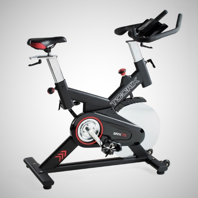 Indoor trenažér TOORX SRX 75 splňuje všechny požadavky pro intenzivní domácí trénink. Propracovaná konstrukce s nosností 130 kg a spolehlivý převodový systém zajistí plynulý a zcela tichý chod trenažéru i při vyšší zátěži. Pro intenzivní trénink jsou upraveny i další komponenty trenažéru: cyklistické sedlo i sportovní řídítka si lze individuálně přizpůsobit dle výšky postavy. Pro kontrolu tréninku je k dispozici přehledný LCD displej, který měří všechny důležité tréninkové hodnoty. Technické parametry a vybavení: Konstrukce rámu. Stabilní ocelová konstrukce je vyrobena ze silnostěnných ocelových profilů s povrchovou úpravou odolnou proti poškrábání. Brzdný systém: Mechanický (přítlačný) brzdný systém umožňuje nastavit i vyšší zatížení. Speciálně vyvážený setrvačník CNC technologií o hmotnosti 22 kg bez volnoběhu. Převodový systém: Plynulá regulace brzdného odporu s manuálním nastavením zátěže. Řemenový převod zajistí bezproblémový, plynulý a zcela tichý chod trenažéru i při vyšší zátěži. Bezpečnost: Ruční rychlobrzda pro rychlé zastavení setrvačníku. Displej: Přehledný LCD displej měří čas, rychlost, tréninkovou vzdálenost, frekvenci otáček za minutu, spotřebu energie (spálené kalorie během cvičení) a puls. Možnost předvolby cílových hodnot pro čas, vzdálenost, puls a spotřebu energie. Měření pulsu: Bezdrátovým hrudním pásem, který měří s přesností EKG (volitelné příslušenství). Integrovaný přijímač signálu z Cardio Puls Setu. Nosnost: 130 kg. Vybavení: Sportovní cyklistické sedlo s možností rychlého výškového a horizontálního posuvu, výškově i horizontálně nastavitelná sportovní řídítka, pedály s klipsy, dva držáky na láhev, kolečka pro manipulaci (umístěná vpředu), mechanismus vyrovnávání nerovností podlahy (vpředu i vzadu). Napájení: 1 ks baterie GP CR2032. Další parametry: Vzdálenost řídítek od sedla: min. 40 cm - max. 54 cm. Vzdálenost řídítek od země: min. 96 cm - max. 107 cm. Rozměry: Po sestavení (d × š × v): 117 × 54 × 125 cm. Hmotnost: 50 kg.