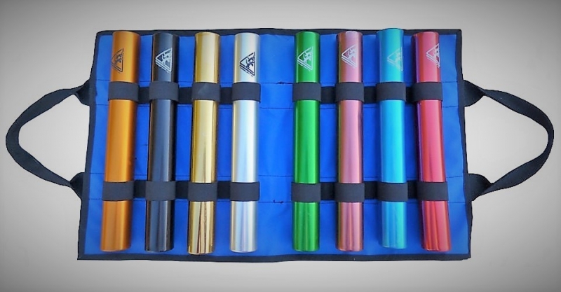 Transportní látková taška s tkalouny na štafetové kolíky. Taška je určena až na sadu osmi kolíků. VYROBENO V ČESKÉ REPUBLICE.