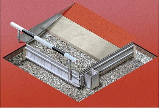 Vodní příkop (patky k zabetonování, ocelová konstrukce, přeběhový rám)