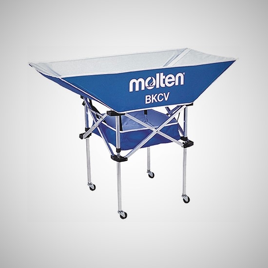 Vozík na míče Molten BKCVHB je pojízdný skládací vozík na míče s trychtýřovým nástavcem. Obsah cca 15 míčů, hliníková konstrukce. Rozměr: 128 x 62 x 25 cm; váha 5 kg.