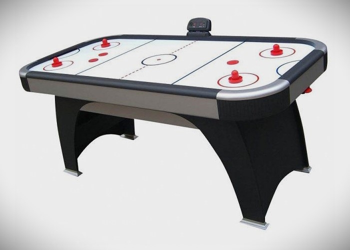 Špičkový vzdušný hokej. Atraktivní vzhled modelu je umocněn zaoblenými profily bez ostrých hran a obloukovitými stolními nohami. Stůl má robustní a stabilní konstrukci s kombinací černé a stříbrné barvy. Tento vzdušný hokej je ideální pro mládež. Hrací pole s dvoubarevnými lajnami je ideální pro rychlé a dynamické zápasy, při kterých se od každého hráče vyžaduje maximální koncentrace a schopnost rychlé reakce a kombinace. Kabinet z MDF tloušťky 18 mm s PVC povrchem černé a stříbrné barvy. Stolní nohy z 8 mm MDF s černým PVC povrchem, přídavnými příčnými vzpěrami a stříbrnými hranatými patkami pro maximální stabilitu. Bílé MDF hrací pole tloušťky 2,5 mm o rozměrech 170 x 80 cm s dvoubarevným potiskem odolné proti poškrábání a úderům. Snadná údržba a čištění. Pod hracím polem je umístěn výkonný ventilátor na 230 V s vypínačem, který fouká vzduch přes otvory v hracím poli a vytváří tak vzduchový polštář. Elektronický displej s integrovanou zvukovou funkcí na boční straně hracího pole pro stále aktuální přehled o stavu zápasu. Po každé vstřelené brance zazní zvukový signál. Rychlé a snadné vracení puku po skórování pomocí vestavěné kapsy. Příslušenství: 4 hokejky a 4 puky. Balení v kartónu. Součástí obalu jsou pevné polystyrénové vložky pro ochranu před případným poškozením při přepravě. Technické parametry: Rozměry : 79/91/182 cm; hmotnost: 46 kg; hrací plocha: 170 x 80 cm.