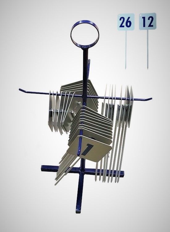Značící terčíky Značky délek hodu pro vrhy a hody. Sada obsahuje čísla od 1 do 30 a stojánek, který umožňuje snadný transport i uskladnění značek. Výška stojánku je 52cm, výška samotného terčíku cca 30cm a destička s číslem na teršíku má rozměr 10x10 cm. VYROBENO V ČESKÉ REPUBLICE.